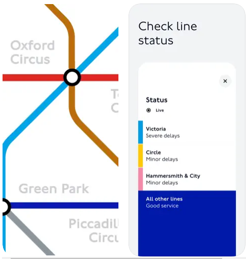 O app oferece informações sobre todas as linhas de metrô, ônibus, trens e tramways da cidade, incluindo mapas, horários, alertas de atrasos e interrupções. Além disso, é possível comprar passagens, carregar o Oyster Card e acessar informações sobre eventos e atrações turísticas.