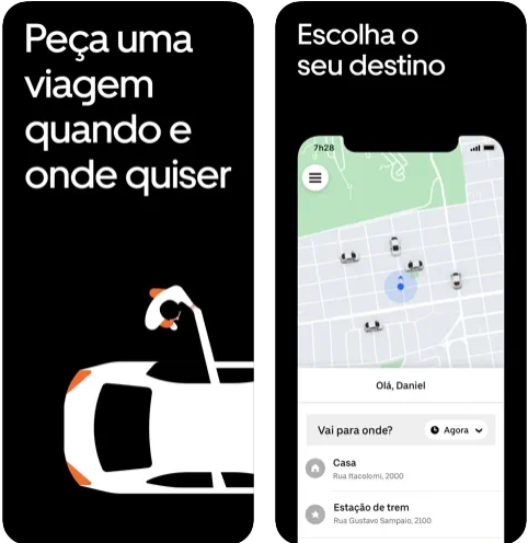 Com o aplicativo Uber, os usuários podem solicitar um veículo com motorista com apenas alguns toques na tela do smartphone. Além disso, o aplicativo oferece uma variedade de opções, desde o serviço econômico até veículos de luxo.