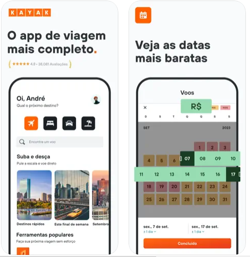 O Kayak é um buscador de viagens que oferece uma variedade de recursos para ajudar você a encontrar a passagem aérea perfeita para sua viagem. O aplicativo Kayak, disponível para Android e iOS, é um dos mais populares do mundo.