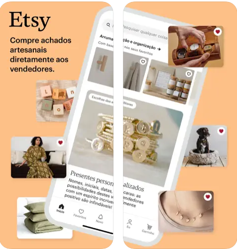 Etsy é uma plataforma de venda e compra de artesanato feito à mão. Se você é um artesão que deseja vender suas criações, o aplicativo Etsy é essencial.