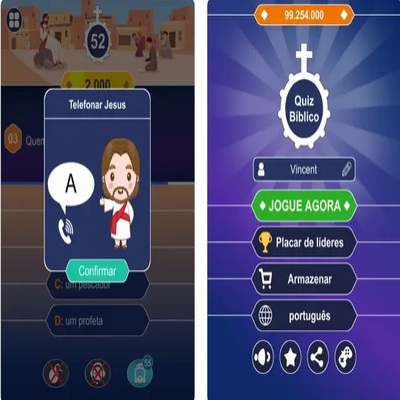 O Bíblia Quiz: Show do Milhão é um aplicativo que combina o formato clássico de perguntas e respostas com temas bíblicos, inspirado no famoso programa de televisão. Assim, com uma vasta coleção de perguntas que abrangem desde conhecimentos gerais até detalhes específicos das Escrituras, o aplicativo oferece uma experiência educativa e divertida. Os usuários podem testar seu conhecimento sobre personagens, eventos e ensinamentos bíblicos, avançando por níveis de dificuldade.