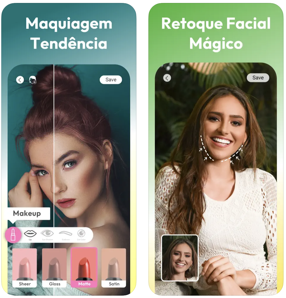 Esse é um dos melhores aplicativos que mudam o rosto porque tem vários recursos ricos. No geral, o YouCam Makeup te permite experimentar diferentes looks de maquiagem e editar suas fotos e vídeos com detalhismo.