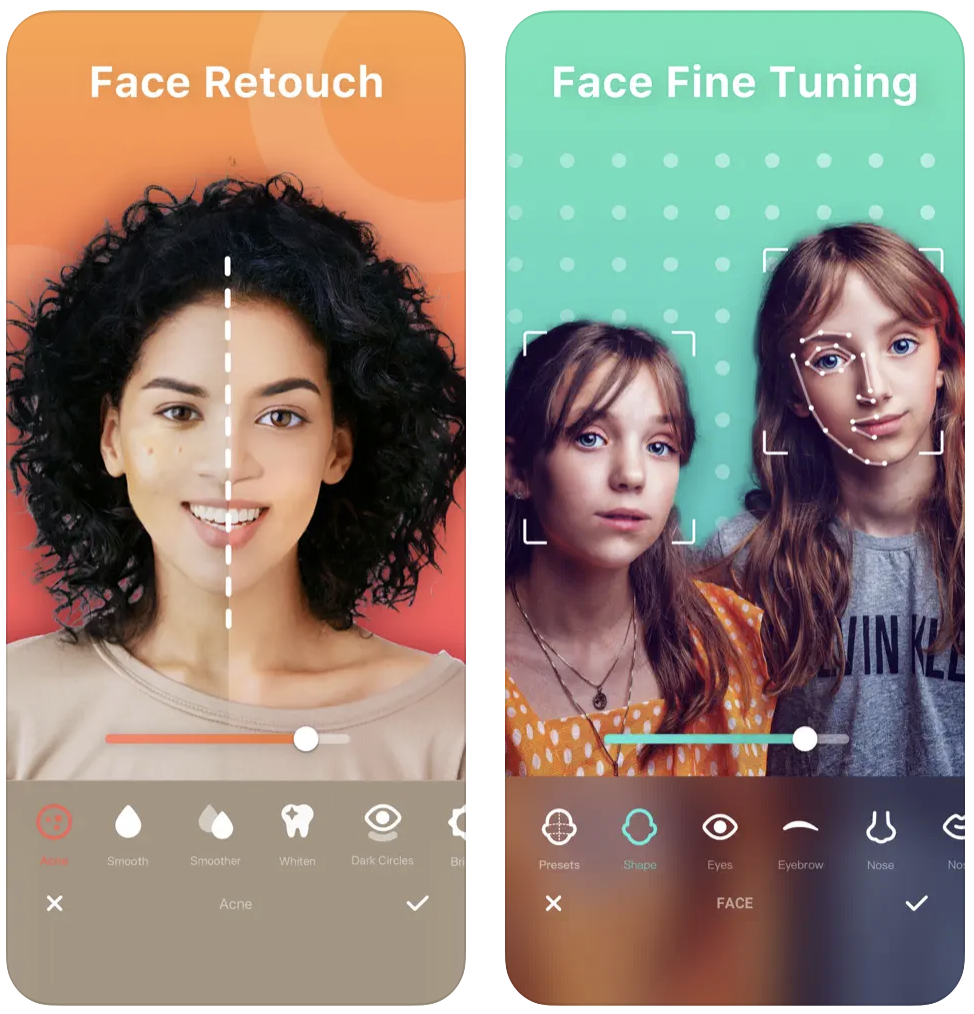 - Editor de selfies: ferramentas avançadas de edição de selfies, como suavização da pele, remoção de manchas, clareamento de dentes, entre outros;