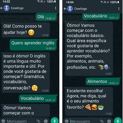 Que tal aproveitar para aprender inglês com praticidade e gratuitamente pelo WhatsApp? Acesse o Cowlingo e conte com essa facilidade, aprimorando seus conhecimentos com a ajuda da Inteligência Artificial!