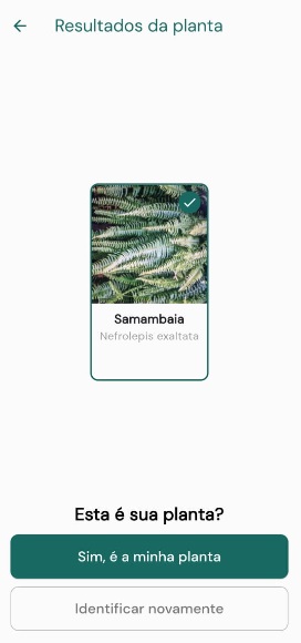 - O aplicativo exibirá o nome da planta identificada.