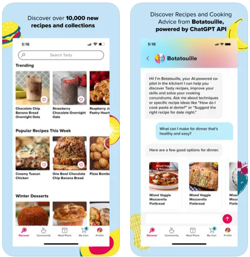 O Tasty oferece uma ampla seleção de receitas, incluindo pratos principais, acompanhamentos, sobremesas e bebidas.