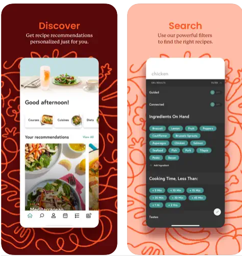 O aplicativo também oferece uma variedade de recursos para ajudar os usuários a encontrar receitas que atendam às suas necessidades, como filtros por dieta, restrições alimentares e ingredientes.